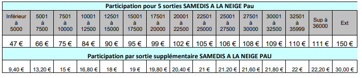 Pour le prêt des skis et bâtons, un chèque de caution d’un montant de 50€, non encaissé et restitué à la fin de la saison, vous sera demandé. La distribution se fera le Vendredi 27 Novembre à l'espace François Moncla - Bizanos de 17h00 à 18h30.