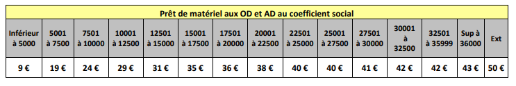 Paiement des 5 premières sorties à l’inscription au coefficient social.